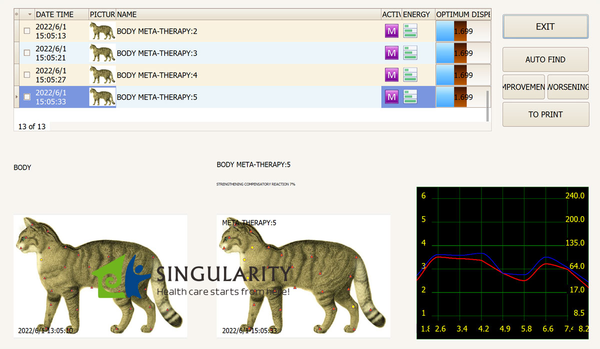 3 IN 1 BIOPHILIA TRACKER can trace the changes in pathology and infections by observing the characteristics of these wavelengths and the changes in the tissues and cells of the body. This utilization of frequency analysis is based on this incredible discovery in natural science which allows us to analyze the magnetic vortex of any biological object. Biofeedback was designed to not only help cats with pain but to identify the specific biological problem in order to address it with natural Biofeedback therapy.