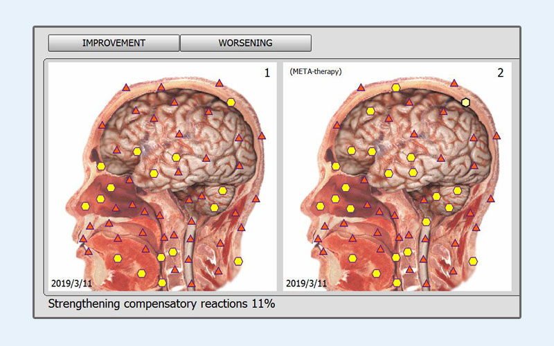 Treatment of pathological processes identified by the bio resonance therapy (meta-therapy).