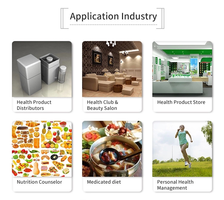 * The instrument can show the body conditions of customers and suggest customers the suitable health food, and the plans to care their bodies.